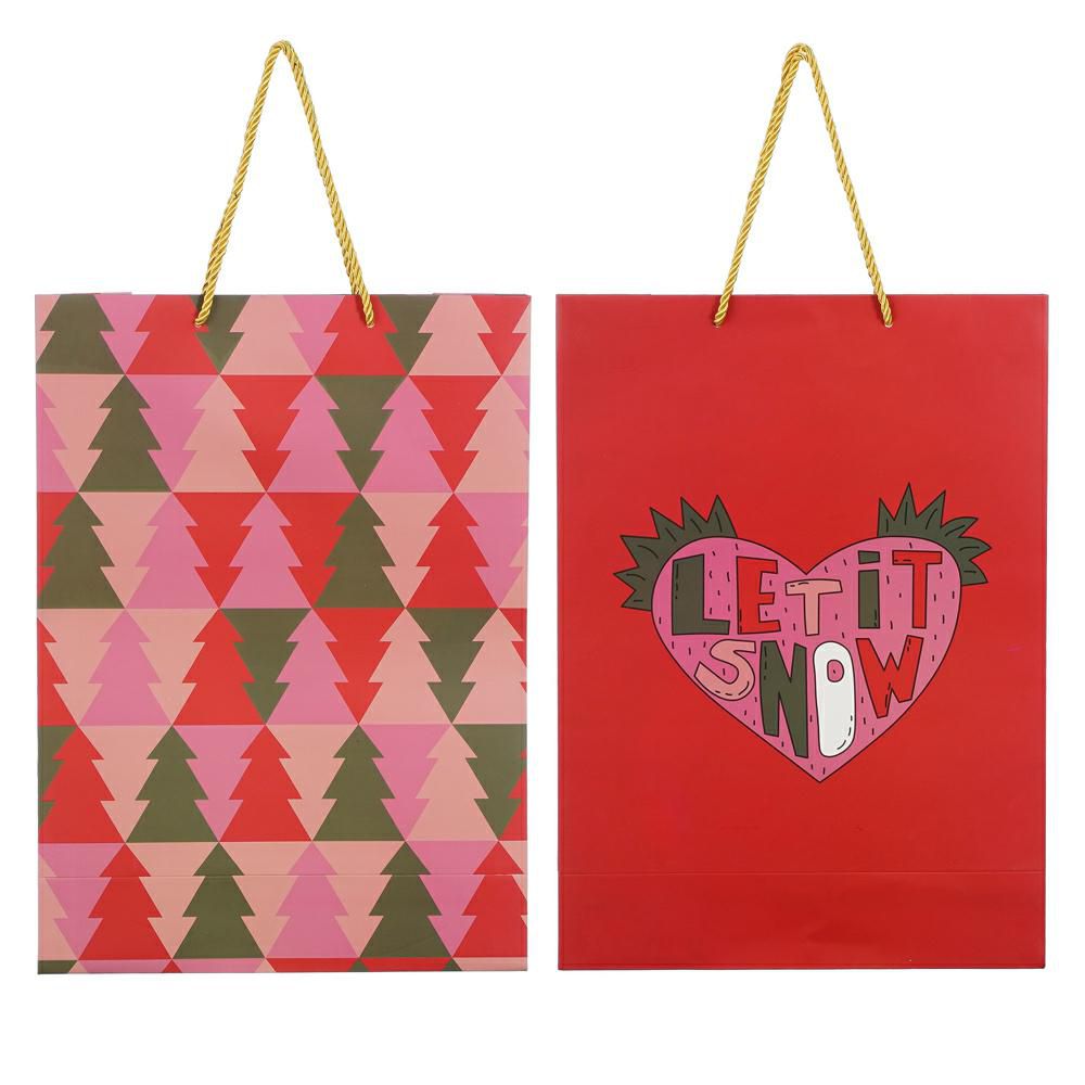 SET 2 SHOPPERS CARTA -XMAS- 30X12 CM H.41,5 CM ROSSO/VERDE