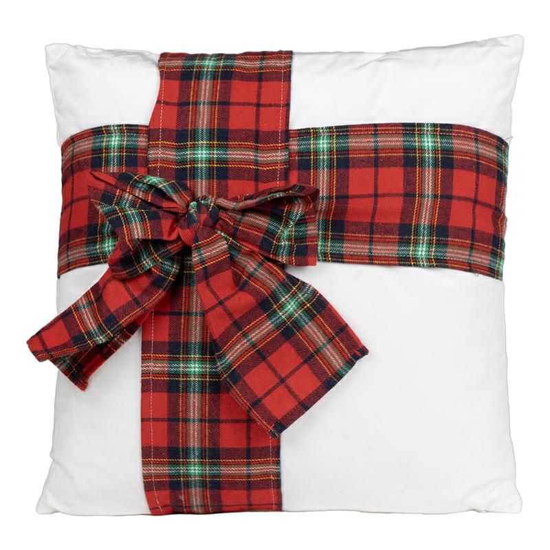 CUSCINO C/FIOCCO SCOZZESE POLIESTERE 40X40 CM BIANCO/ROSSO/VERDE